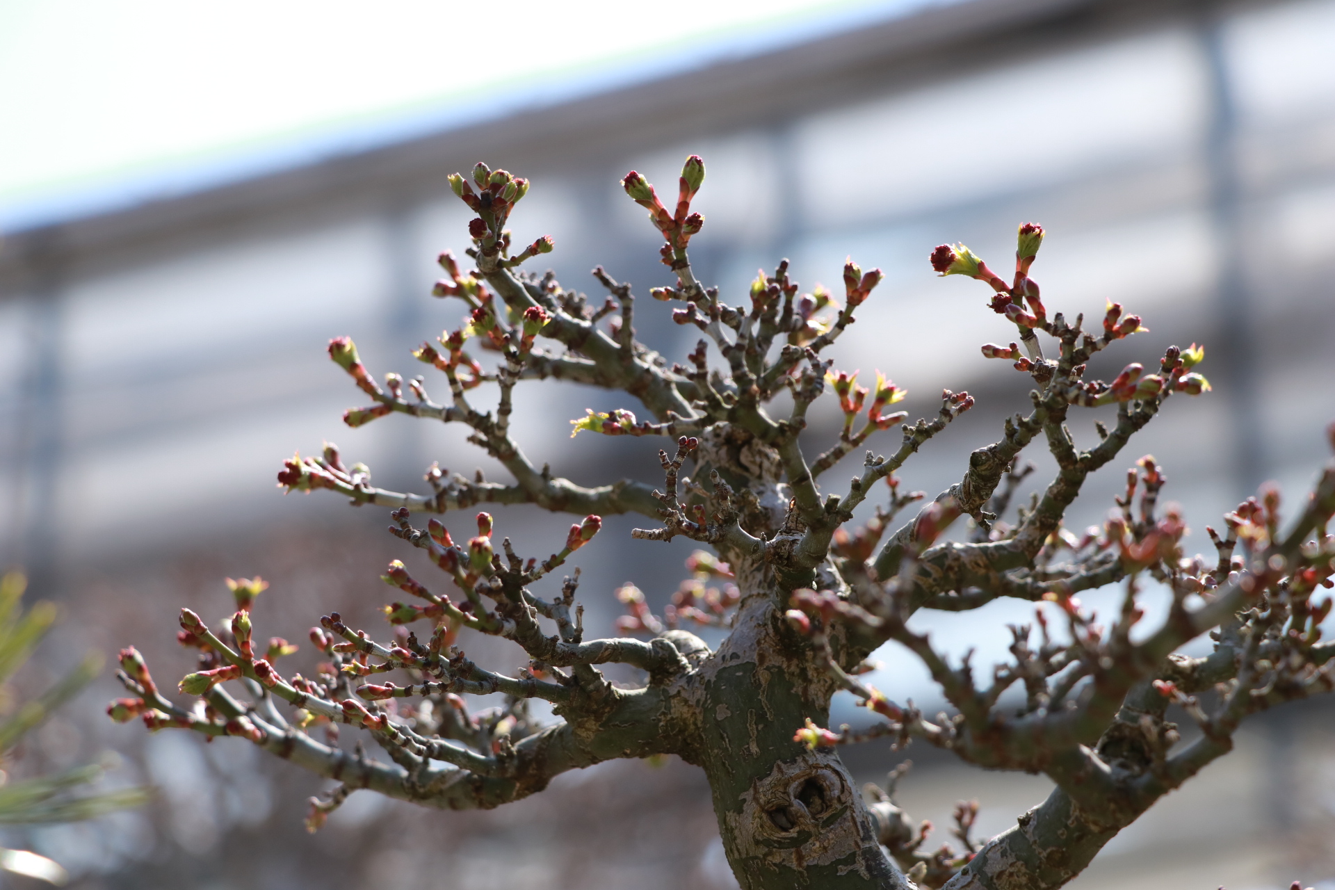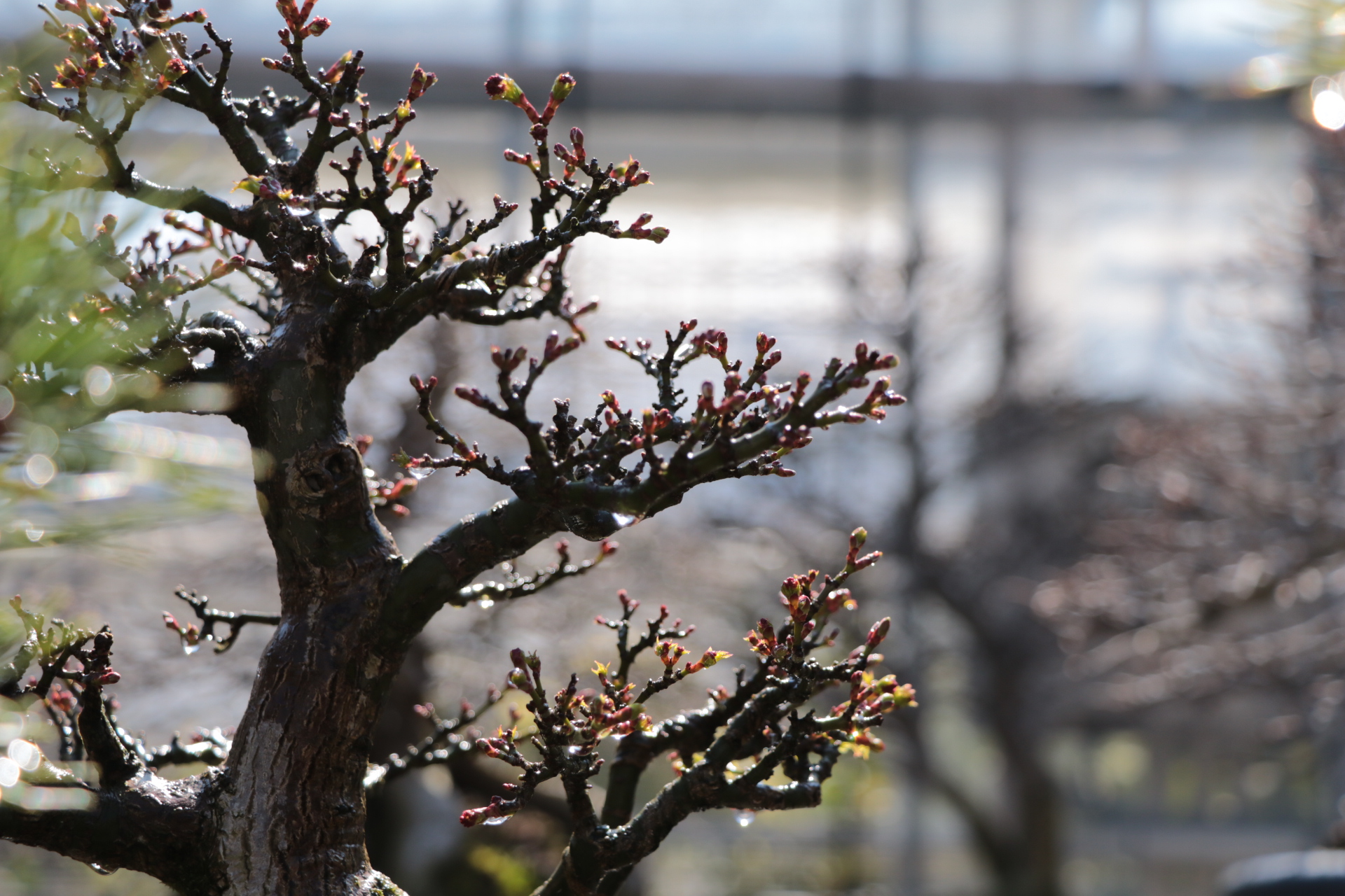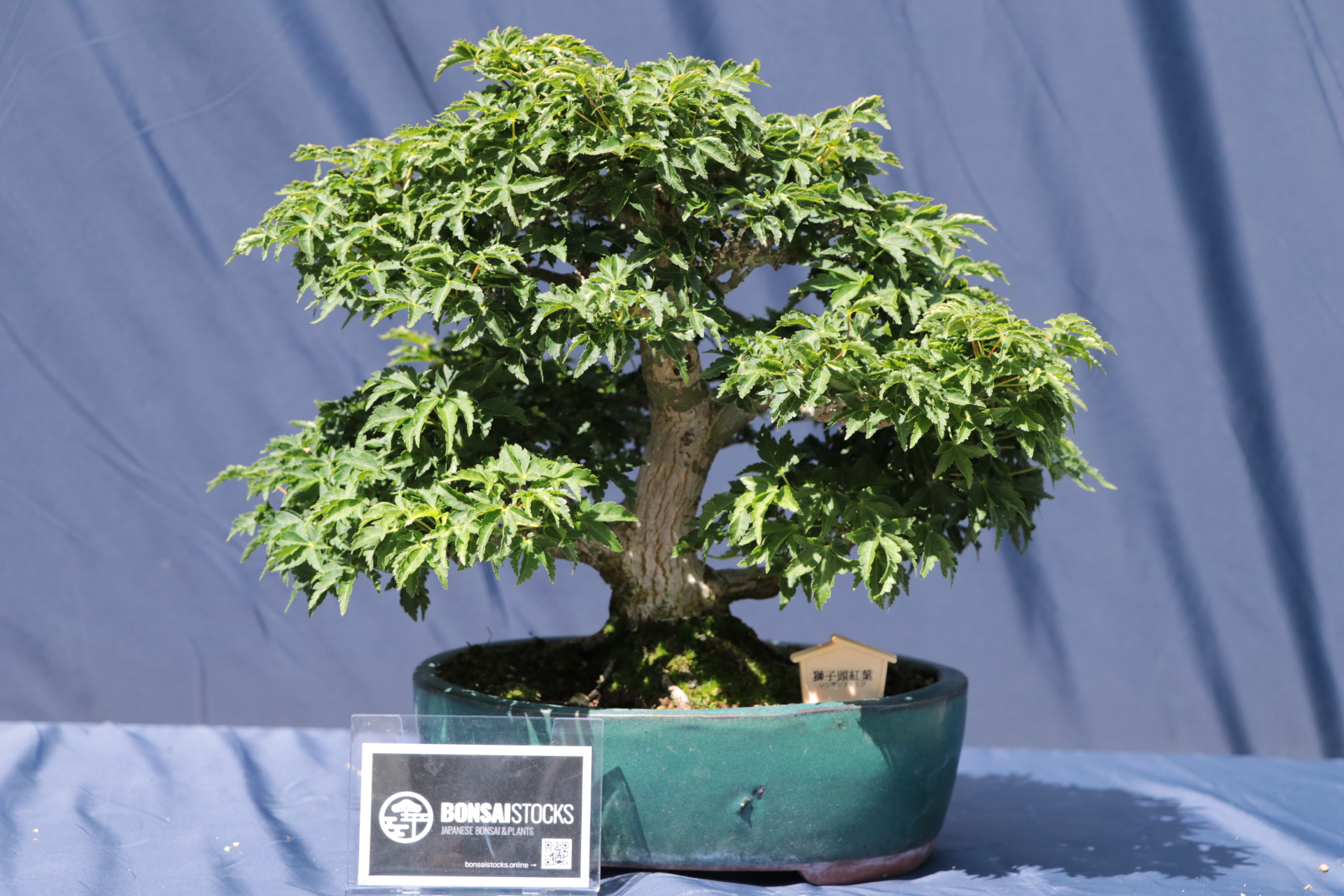 盆栽の大きさがわかりやすいようにカードサイズの札を立てています。