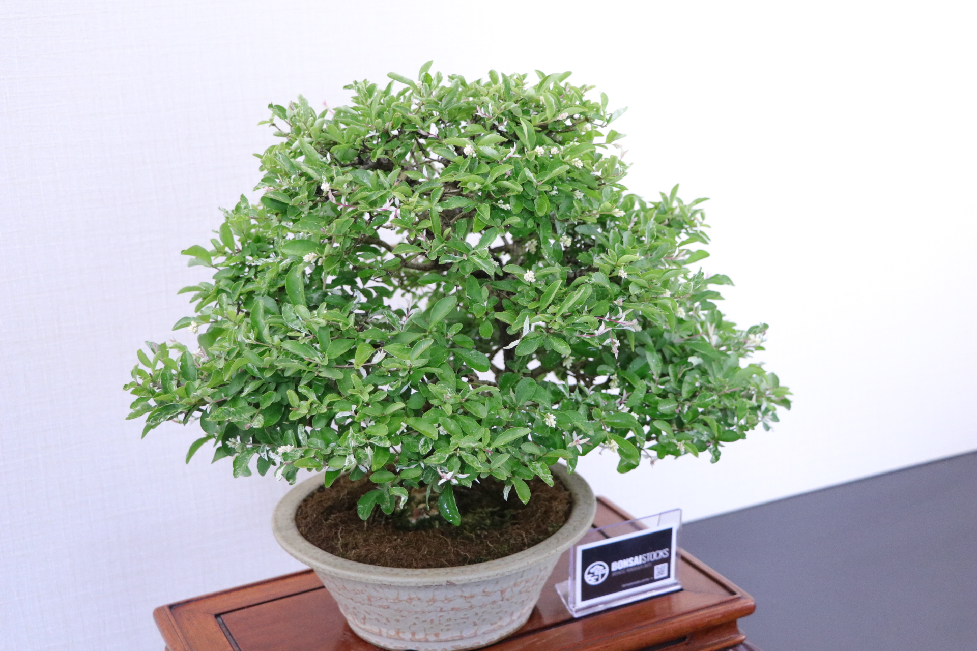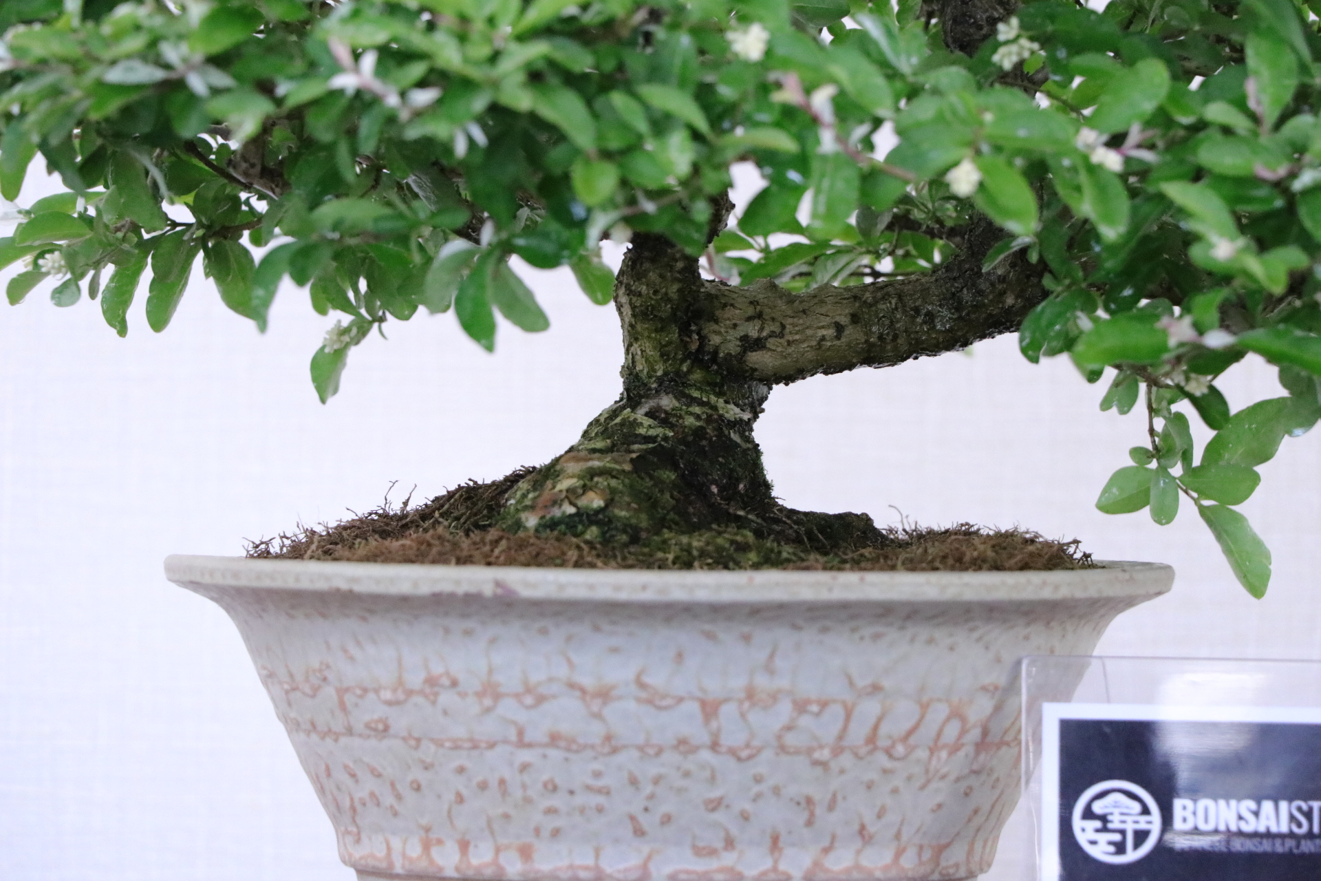 盆栽の大きさがわかりやすいようにカードサイズの札を立てています。