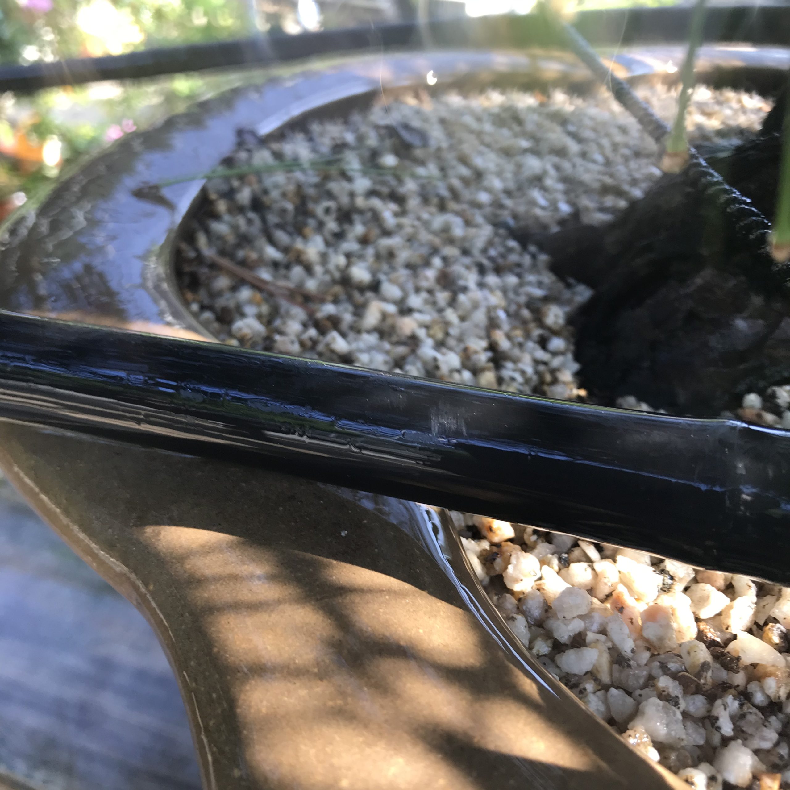 盆栽は毎日水やりしないといけないから湿った状態でも水やりをする。