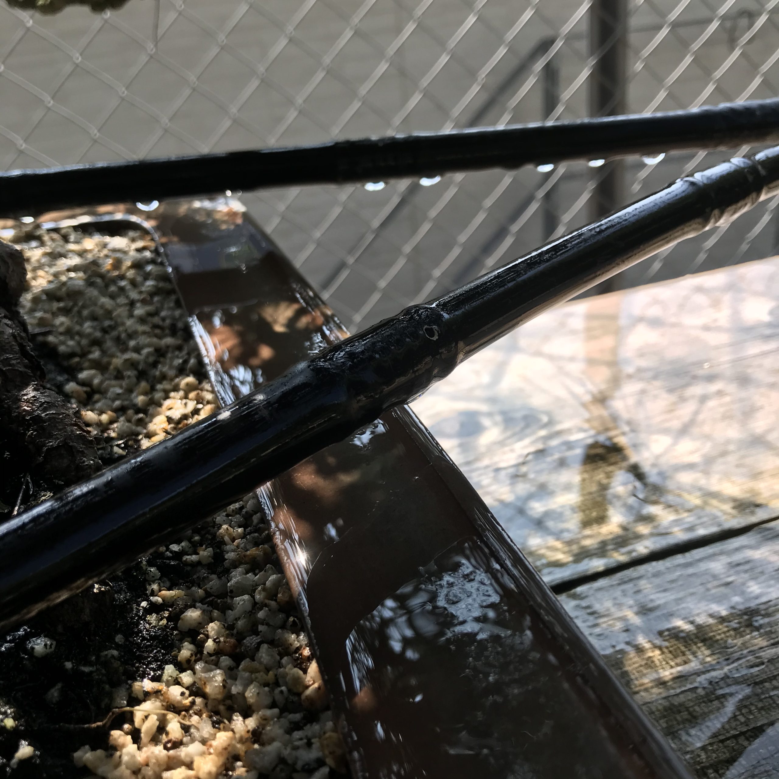 写真のチューブが鉢の上を通ってます。